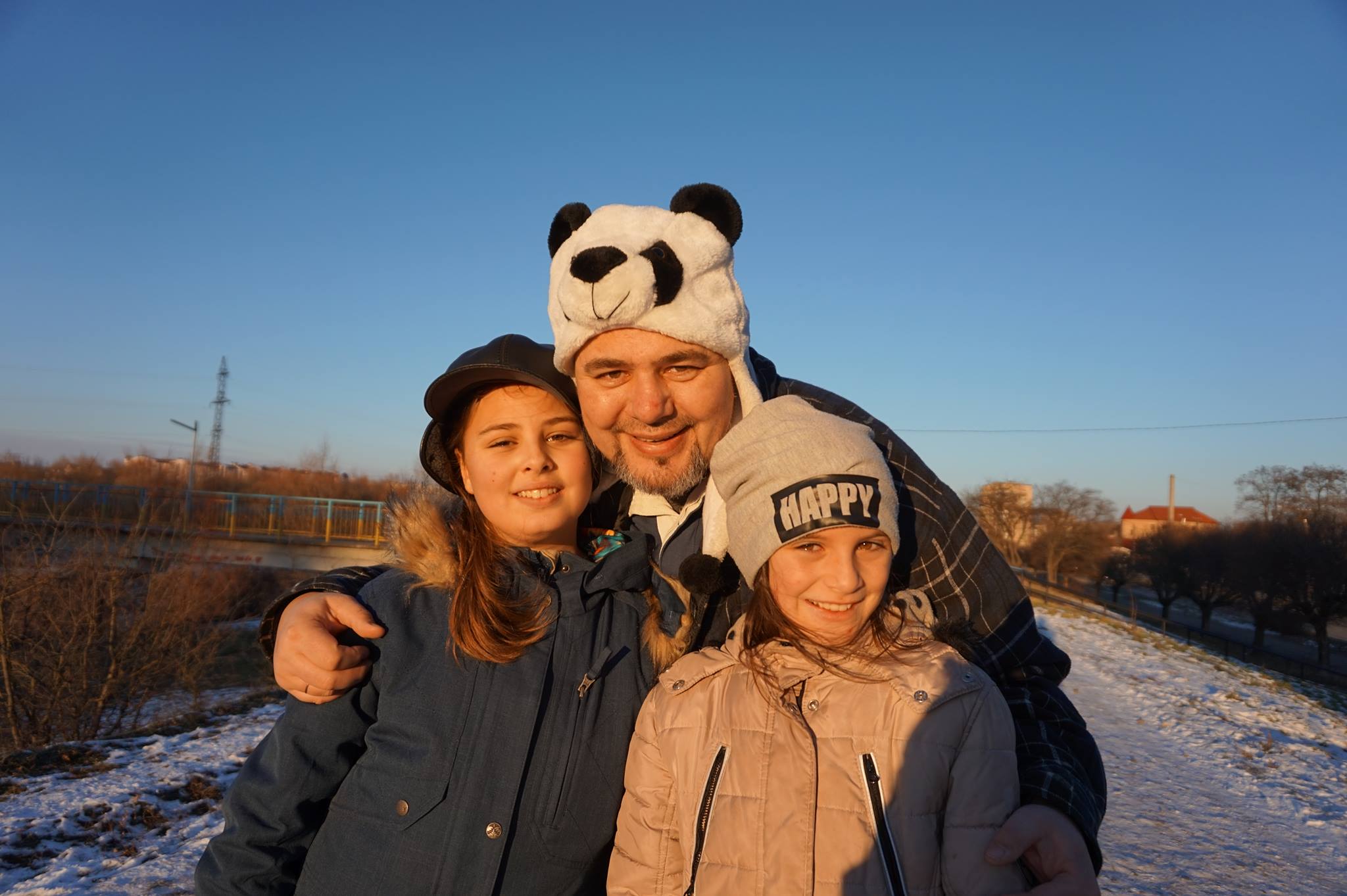 Photo caption: Ruslan Kotsaba with his daughters Kvitoslava and Zoreslava